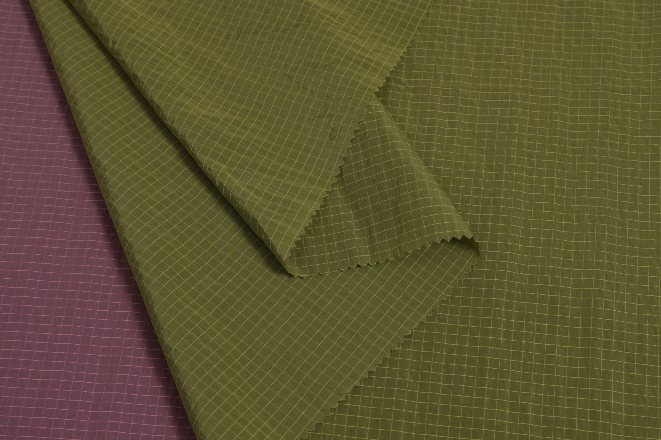 Recycled nylon fabric,use for luggage,backpack,laptop bag,handbag,cosmetic bags,shoes,hats,funtional clothing,etc.With Bright line and Plaid design element.